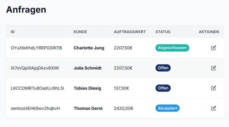 Unsere Plattform ist intuitiv und einfach zu bedienen. Verwalte deine Termine, Angebote und Kundenkommunikation an einem Ort. So sparst du Zeit und behältst den Überblick.